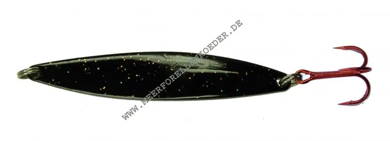 Das Wort Spigg kommt aus dem Dänischen und heißt soviel wie kleiner Stichling. Und in vielen Regionen gehört der Stichling zur Lieblingsbeute der Meerforellen. Aber das heißt nicht das man mit dem Blinker nur dort fischen kann wo es Stichlinge gibt, sondern der Grizzly imitiert auch andere Kleinfische wie Sprotte, kleiner Hering oder auch Aalmutter.  Der Grizzly Spigg ist ein kleiner Blinker für Meerforelle, Hornhecht, Wolfsbarsch und Forelle in der Ostsee oder/und im Fluß. Der Blinker wird aus feinstem Edelstahl ausgestanzt  und dann mit erprobten Farbkombinationen in Top Qualität von Hand lackiert. Alle Blinker sind mit erstklassigen rostfreien Splitringen und starken Drillingshaken ausgestattet.
