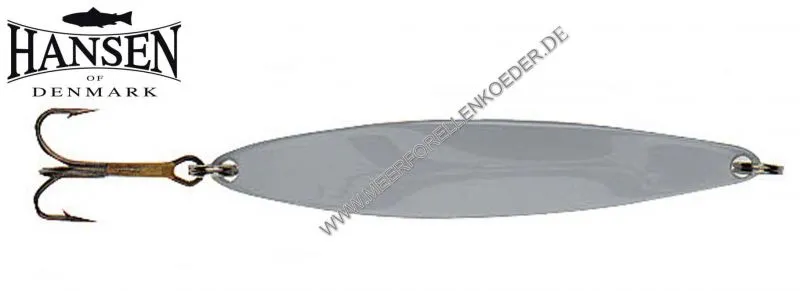Der Hansenblinker ist ein Spezial-Blinker für das Forellenangeln mit einem legendären Namen im nördlichen Skandinavien. Ausgestattet mit 2 Stück hochwertigen Sprengringen und Black Nickel Tournament Drillingshaken. Der Fight Blinker ist eine Legende an der Küste und wohl jeder hat ihn schon gefischt.  Für 2016 kommt der Köder in 5 Sonderfarben. Im Gegensatz zu seinem schlanken Bruder kann man den Fight auch langsam noch gut führen, da er nicht so schnell durchsackt. Der Blinker imitiert einen kleinen Beutefisch den sich die Forelle nicht entgehen lassen kann.