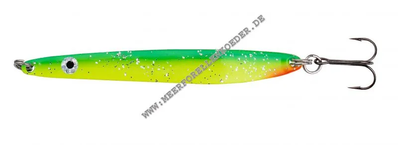 Der stehts bewährte und beliebte Killer Blinker ist ausgestattet mit 2 Sprengringen und Black Nickel Tournament Drillingshaken. Der schlanke Köder der schnell geführt werden sollte, imitiert einen kleinen Sandaal. Die Meerforellen haben Sandaale zum fressen gern und lassen sich diese Leckerbissen nicht entgehen. Für 2010 gibt es 6 neue und 2 altbewährte Farben zur Auswahl aber leider wird die 26g Version nicht mehr angeboten.
