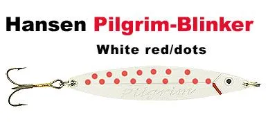 Der neue Pilgrim ist ein klassisch ausgeformter Blinker, der extrem fängig für Forelle und Lachs in Seen und Fliessgewässern ist. Der Blinker wird aus Messing ausgestanzt, wonach er mit einem Schuppenmuster an der Rückseite ausgestattet wird und dann mit erprobten Farbkombinationen bemalt wird. Alle Blinker sind mit erstklassigen rostfreien Splitringenund starken Drillingshaken von Mustad ausgestattet.