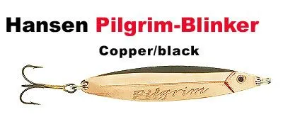 Der neue Pilgrim ist ein klassisch ausgeformter Blinker, der extrem fängig fürs Forelleangeln und Lachsangeln in Seen und Fliessgewässern ist. Der Blinker wird aus Messing ausgestanzt, wonach er mit einem Schuppenmuster an der Rückseite ausgestattet wird und dann mit erprobten Farbkombinationen bemalt wird. Alle Blinker sind mit erstklassigen rostfreien Splitringen und starken Drillingshaken ausgestattet.