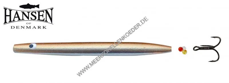 Durch das zusätzliche Gewicht am Schwanz wirft der Mefo-Inliner sich auch super gegen den Wind. Beim Spinstop sinkt der Meerforellenblinker zuerst mit dem Heck ab, so wie echte Tobiasfische die sich im Sand eingraben wollen. Durch diesen Reiz wurden schon viele Meerforellen überlistet. Die neuen Hansen Durchlaufköder werden mit 3 Stück Knotenschutzperlen und super scharfen BKK Drilling mit Sprengring im Blister geliefert. Die Hansen Tobis Inline Blinker sind einzeln verpackt.