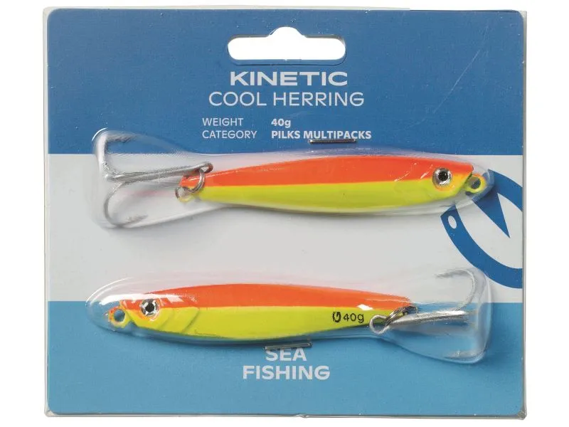 Der Kinetic Cool Herring ist ein Minipilker mit 25g Wurfgewicht. Durch die Kompakte Form von 75mm kann man ihn sehr gut werfen. Der Pilker läuft aber nicht ohne Aktion durchs Wasser sonder beim Einholen schwänzelt er von rechts nach links.  Das Besondere an dem Minipilker sind die 3-D Augen. Der Pilken hat auch schon viele Barsche und Rapfen überlistet aber auch Hornhechte lassen sich gut fangen. Wer den Köder etwas langsamer führt kann auch Meerforelle und Wolfsbarsch fangen. Über den Grund gezockt wurden auch schon schöne Zander gefangen.