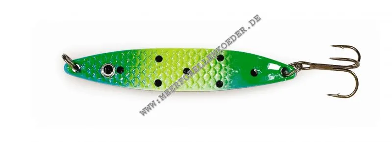 Der Kinetic Mimer ist ein wellenförmig geschwungener Blinker. Die Köder lassen sich gut werfen und zeigen beim einkurbeln ein verführerischen Lauf. Die  Kinetic Blinker sind mit besten Komponenten ausgestattet wie z.B.super scharfen Black Nickel Drillingen. Der Mimer imitiert einen kleinen Hering und hat er schon viele Hornhechte und Meerforellen überlistet.  Mit diesem Köder räumen Sie unter den Hornhechten richtig auf.