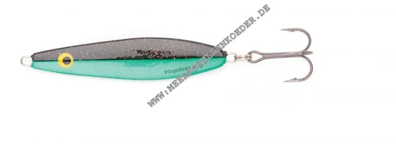 Der Kinetic Pilspidsen ist ein flacher Tropfenförmiger Blinker. Der Körper ist von der Mitte zu den Seiten abgeflacht dardurch fliegt der Pilspidsen wie eine Rakete . Ausserdem schwänzelt der Magic Minnow beim Einkurbeln verführerisch und hat beim Spinstop ein verführerisches abtaumeln. Die Kinetic Pilspidsen Blinker sind nur mit besten Komponenten ausgestattet wie z.B. VMC 9649 BN Drillingen. Der Pilspidsen imitiert einen kleinen Fische wie Sprotte oder einen Hering und hat bei den Test's schon viele Meerforellen überlistet.