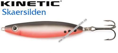 Der Kinetic Skaersilden ist ein wellenförmig geschwungener Blinker. Die Köder lassen sich gut werfen und zeigen beim einkurbeln ein verführerisch taumelnden Lauf. Die Kinetic Skaersilden Blinker sind nur mit besten Komponenten ausgestattet wie z.B. VMC 9649 BN Drillingen. Der Skaersilden imitiert einen Hering und hat er schon viele Meerforellen überlistet. Nicht umsonst hat er den Namen " Fegefeuer ". Mit diesem Köder räumen Sie unter den Meerforellen richtig auf.