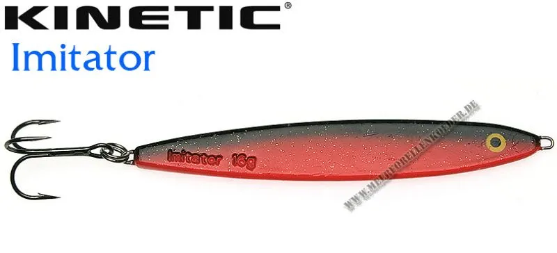 Der Kinetic Imitator ist ein flacher Blinker der zu Ende hin dicker wird. Durch dieses Zusatzgewicht am Schwanzende lassen sich die Köder sehr gut werfen und zeigen beim Spinstop ein verführerisches abtaumeln.Dieser Köder wurde für den Spinstop entwickelt. Kein anderer Köder sinkt verführerischer ab. Die Kinetic Imitator Blinker sind nur mit besten Komponenten ausgestattet wie z.B. VMC 9649 BN Drillingen. Der Blinker imitiert einen kleinen Sandaal und sollte immer mit Spinstop gefischt werden.