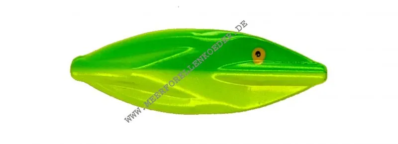 Der kleine HighTech Inline Blinker ist ein Bruder vom Boss Blinker mit einer unregelmäßigen Form für mehr Aktion. Die kleinen Mefoblinker fischen besonders im Frühjahr wenn das Wasser noch sehr kalt ist super gut. Auch im Fluß auf Bachforelle und Regenbogenforellen sind diese Blinker top. Wenn man den Meerforellenblinker schnell einkurbelt bricht der Köder stark nach allen Seiten aus und lockt so die Forellen an. Beim Spinstop oder wenn man sehr langsam kurbelt beginnt der Blinker um die eigende Achse zu rotieren. Ein aushebeln gehakter Fische wird durch die Schnurinnenführung fast unmöglich was besonders wichtig ist wenn die Forellen nur vorsichtig und spitz beissen. Die Meerforellenköder werden in Dänemark entwickelt , geteste und dann einzeln von Hand gegossen und lackiert. Jeder Inline-Blinker ist somit ein kleines Kunstwerk und Unikat. Bei den Tests in Dänemark wurden auch schöne Bachforellen in den Auen gefangen.