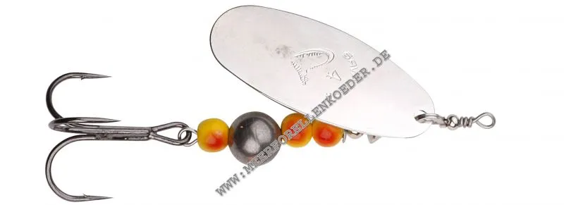 Die neuen Caviar Spinner wurden für das Fischen auf Forelle, Bachsaibling, Regenbogenforelle, Äsche, Meerforelle und Seebarsch entwickelt - aber sie verlocken auch Zander, Hechte, Barsch und Rapfen. Die Weitwurfspinner laufen verführerisch im Wasser - sowohl im Fluss, im Bach oder im Meer. Die Spinner haben einen Fischei-Imitationskörper aus 4 Kugeln wobei eine Kugel aus Wolfram ist. Das besondere an dieser Kugel ist das sie nicht mittig gebohrt wurde um Drall zu verhindern. Wolfram ist schwerer als Blei und so kann man weiter werfen und der Spinner sinkt in den Gumpen schneller ab. Das Spinnerblatt aus Edelstahl wurde viele Stunden im Bach, Fluss, Meer und im stillen Wasser getestet und immer weiter entwickel. Jeder Spinner ist getestet und ist ein individuelles Schmuckstück mit qualitativ hochwertigen Komponenten gebaut und super scharfen japanischen Haken bestückt.