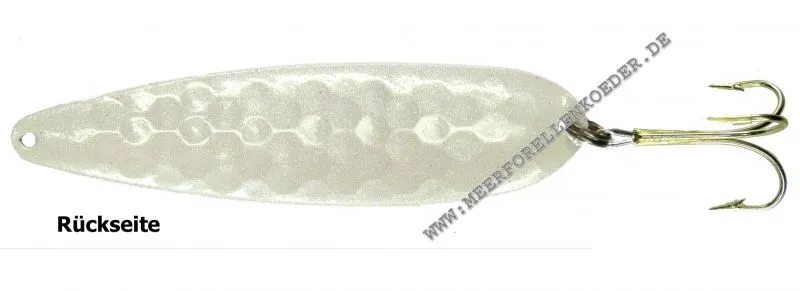 Viele Trollingangler kennen sicher noch den Kultblinker DK " Pirat " aus Dänemark. Der Pirat Schleppblinker ist ein Premium Blinker mit einer perfekten Lackierung von Ole OG-Paint ( Bornholmerpilen ). Die Form des Pirat kann man so beschreiben der Blinker ist Hinten breiter als Vorn, etwas gewölbt und hat am Heck einen leichten Knick. Der Lachslöffel wird zusätzlich noch mit einem Waffelmuster geprägt. Dieses Muster erzeugt im Wasser viele Lichtreflexe und kleine Turbulenzen. Die erprobte Blinkerform ist sicher auch dafür Verantwortlich, dass der Köder einem einzigartigen Lauf im Wasser hat und so viele dicke Ostseelachse und Meerforellen überlistet. Die optimale Schleppgeschwindigkeit für die den " Pirat "liegt im Bereich zwischen 1,9-2,5 Knoten und der Kultblinker ist somit mit vielen anderen Trollingködern einsetzbar. Die DK Pirat Trollinglöffel sind handlackiert in Denmark.