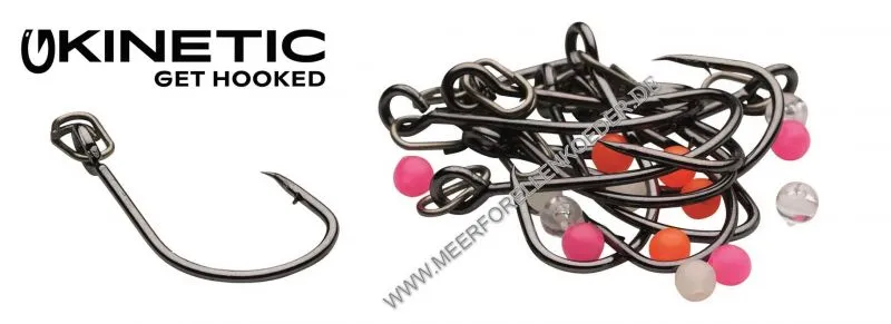 10 Stück scharfe Einzelhaken von Kinetic im Set mit Perlen. Die Haken haben ein Öhr und lassen sich mit dem ovalen Sprengring gut hinter Meerforellenblinkern oder Wobbler befestigen. Durch die Verwendung von Einzelhaken hat man weniger Hänger und untermaßige Fische lassen sich leichter zurücksetzen. Die Single Hooks haben eine leicht nach innen gebogene Spitze. Entwickelt für die Durchlauf-Köder aber auch genauso gut für alle anderen Blinker und Wobbler.